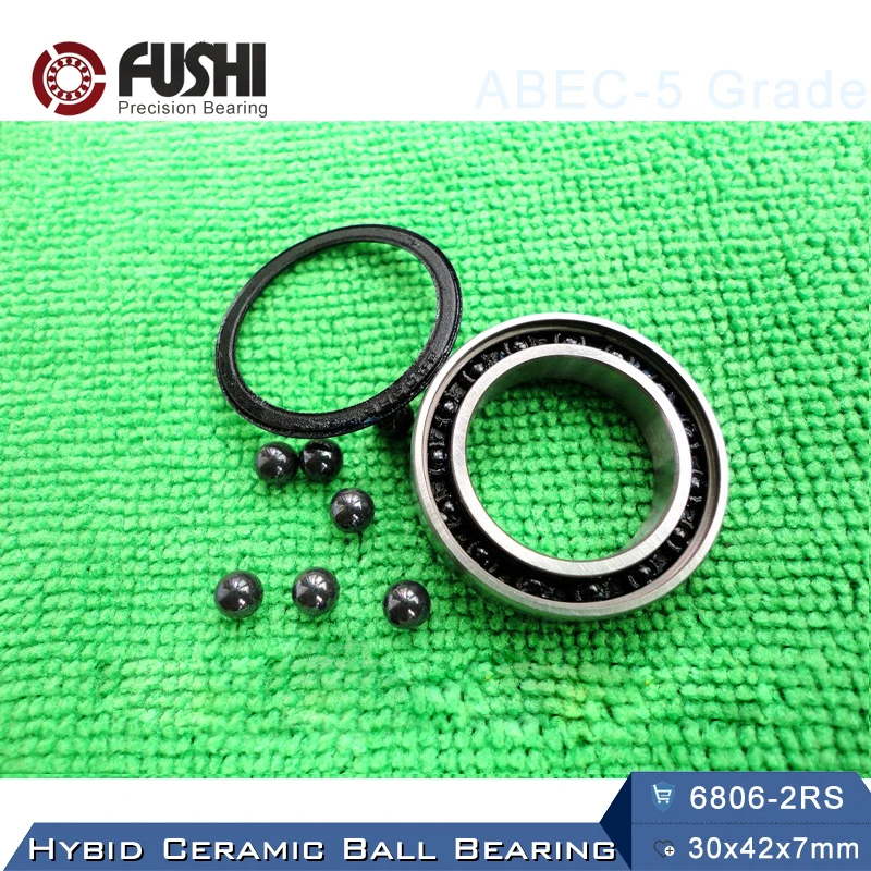 6806 Hybrid Ceramic Bearing 30*42*7 mm ABEC-5 ( 1 PC ) P5 Inner & Outer Ring 6806-2RS Si3N4 Ball Bearings 6086RS