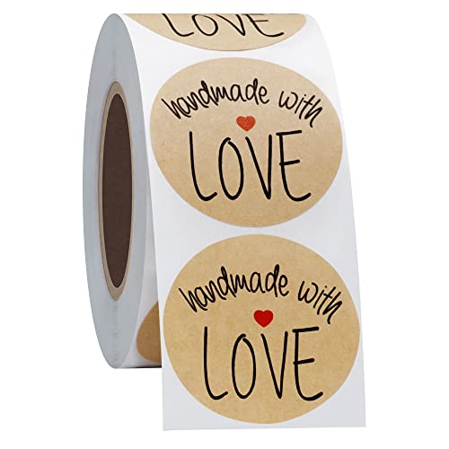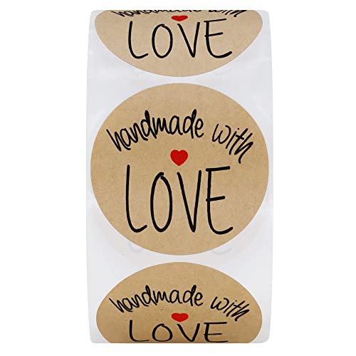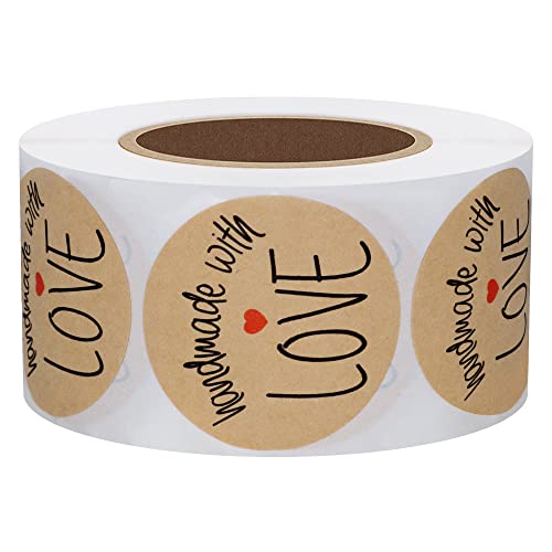 Hybsk (TM) 3,8 cm inch Round Natural Kraft realizzato a mano con amore Adesivi con font nero totale 500 etichette adesive per rotolo 1 Roll
