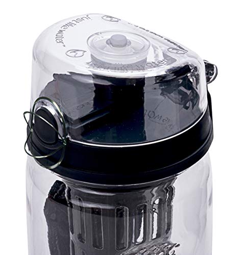 Hydracy Bottiglia con infusore per acqua aromatizzata alla frutta, Linee Marca tempo e sacca isolante antitraspirante -1L -Senza BPA -Perfetta per depurare l'organismo, per gli sport -Carbone Nero