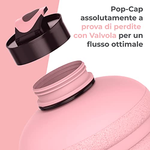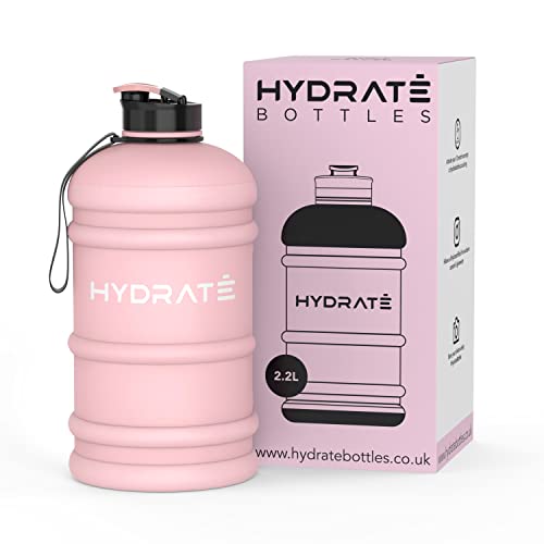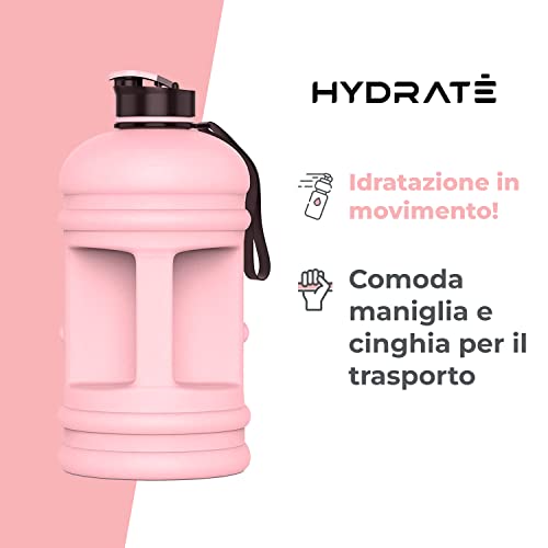 HYDRATE XL - Borraccia da palestra senza BPA, con tappo a scatto, a prova di perdite - Rosa opaco - Bottiglia con Materiale extra resistente - 2,2 litri
