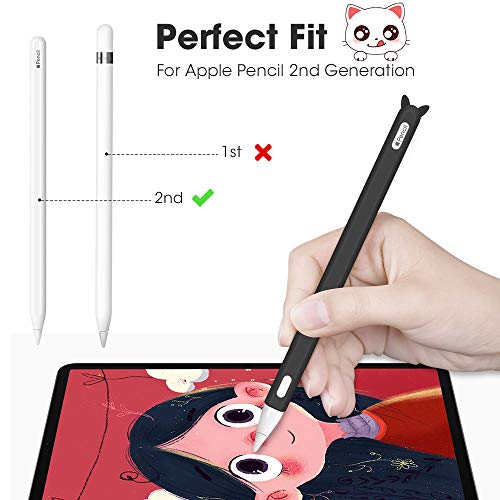 Hydream Custodia in Silicone per Apple Pencil (2. Gen) Case Accessorio, Stile Carino Grip Holder Cover Protettiva e 2 Copertura del Pennino per Apple Pencil Penna Matita 2 (Nero)