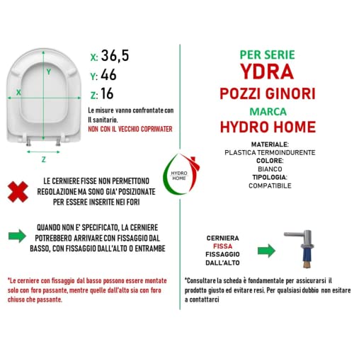 HYDRO HOME Tavoletta Wc Pozzi Ginori Ydra Come Originale, Copriwater In Materiale Termoindurente, Tavoletta Water Con Cerniere Fissaggio Dall'Alto MADE IN ITALY