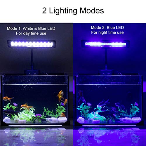 【2 Modalità di Luce】 La lampada 21W ha 45 spot LED, di cui 36 bianchi e 9 blu. Applicabile per fornire la luce più appropriata per la crescita di piante acquatiche, pesci tropicali e altre creature marine.