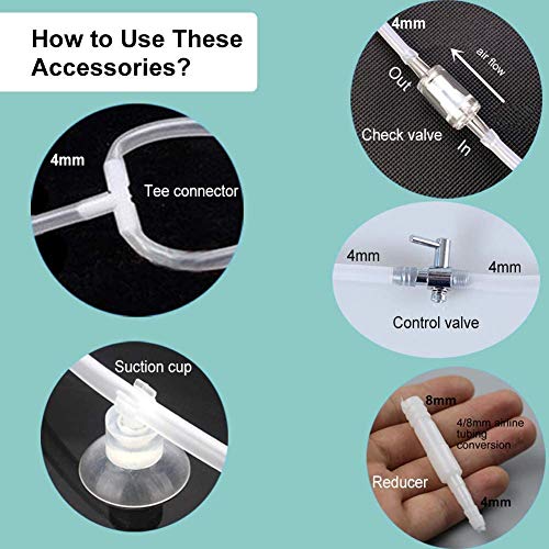 【6 Accessori Gratuiti】❗Si prega di notare che il tubo dell'aria e la pompa dell'aria non sono inclusi. Il kit pietra porosa comprende 1 pietra nano disco d'aria, 1 valvola di controllo, 1 valvola di ritegno, 2 ventose, 1 raccordo a T, 1 riduttore.