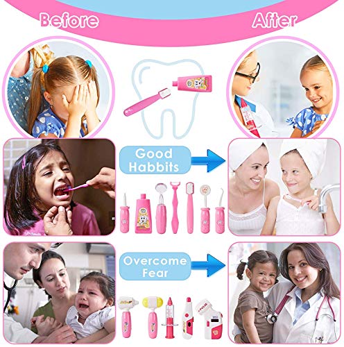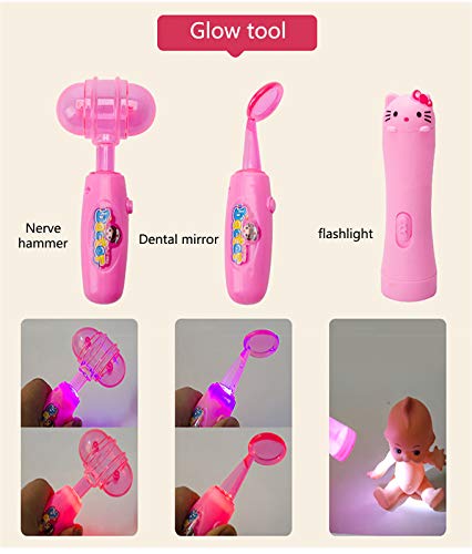 [Kit da 35 pezzi]: il "Doctor Medical Kit" contiene abbastanza strumenti medici per consentire a tuo figlio di fingere di svolgere il ruolo di medico, infermiere o paziente, aiutandolo a saperne di più sulla conoscenza della salute e riducendo l'ansia per gli esami. Stetoscopi, otoscopi, specchietti dentali e torce si illumineranno per aumentare l'esperienza reale.