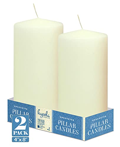 Hyoola Candele Bianche Avorio Cilindriche - Candele Decorative a Colonna 10 x 20 cm - Candele Lunga Durata Senza Profumo - Set da 2 Candele Bianche Cilindro - Candele Cilindro Made in EU