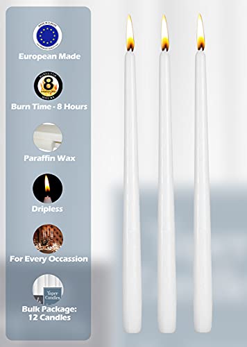 Hyoola Candele Lunghe a Cono 25 cm - Candele Coniche Senza Profumo Antigoccia - Candele Bianche - Candele Lunga Durata 8 ore - Set Candele Affusolate da 12