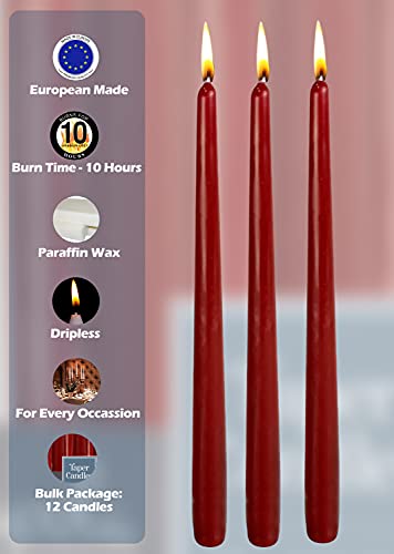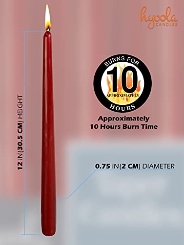 Hyoola Candele Lunghe a Cono 30 cm - Candele Coniche Senza Profumo Antigoccia - Candele Colorate Bordeaux - Candele Lunga Durata 10 ore - Set Candele Affusolate da 12