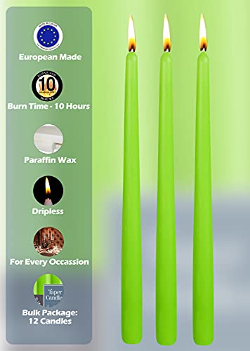 Hyoola Candele Lunghe a Cono 30 cm - Candele Coniche Senza Profumo Antigoccia - Candele Colorate Verde Lime - Candele Lunga Durata 10 ore - Set Candele Affusolate da 12