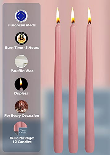 Hyoola Candele Lunghe a Cono 25 cm - Candele Coniche Senza Profumo Antigoccia - Candele Colorate Rosa - Candele Lunga Durata 8 ore - Set Candele Affusolate da 12