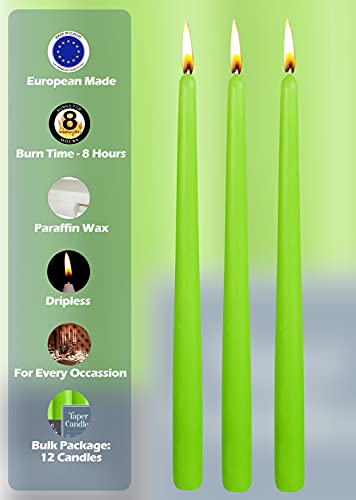Hyoola Candele Lunghe a Cono 25 cm - Candele Coniche Senza Profumo Antigoccia - Candele Colorate Verde Lime - Candele Lunga Durata 8 ore - Set Candele Affusolate da 12