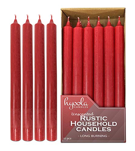 Hyoola Candele Lunghe 25 cm - Set Candele da 12 - Candele Alte Rosso - Candele Colorate Rustiche Senza Profumo - Candele Lunga Durata