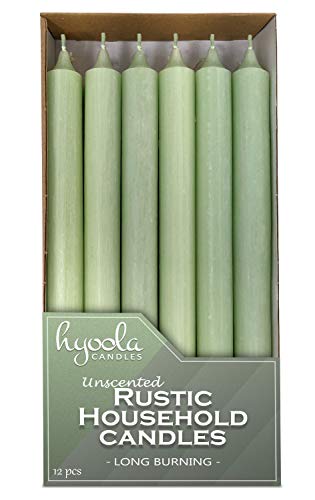 Hyoola Candele Lunghe 25 cm - Set Candele da 12 - Candele Alte Verde chiaro - Candele Colorate Rustiche Senza Profumo - Candele Lunga Durata