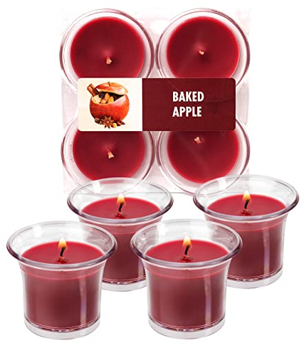Hyoola Candele Profumate Votive con Portacandele Trasparente - Candele Profumate Piccole Mela Cotta - Durata Candela Votiva 12 Ore - Set Candele Profumate da 4 - Made in EU