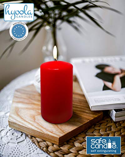 Hyoola Candele Rosse Cilindriche - Candele Decorative a Colonna 5 x 10 cm - Candele Lunga Durata Senza Profumo - Set da 4 Candele Rosse Cilindro - Candele Cilindro Made in EU