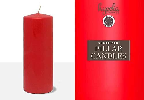 Hyoola Candele Rosse Cilindriche - Candele Decorative a Colonna 7,5 x 20 cm - Candele Lunga Durata Senza Profumo - Set da 6 Candele Rosse Cilindro - Candele Cilindro Made in EU