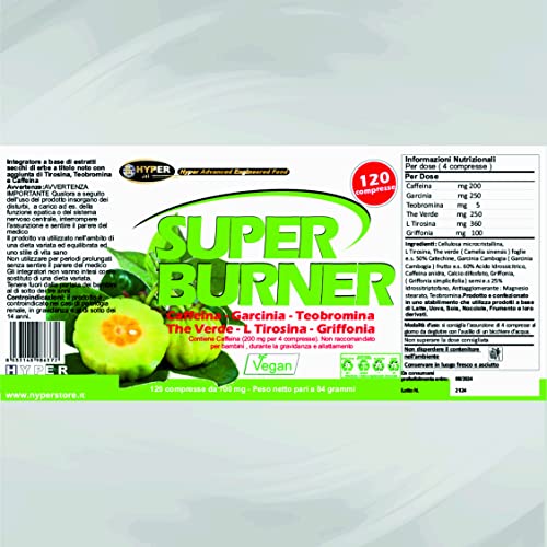 POTENTE DIMAGRANTE - Dimagrire rapidamente e naturalmente con Super Burner la sua formula con Caffeina, Garcinia Teobromina The Verde Tirosina Griffonia possono favorire la perdita di peso