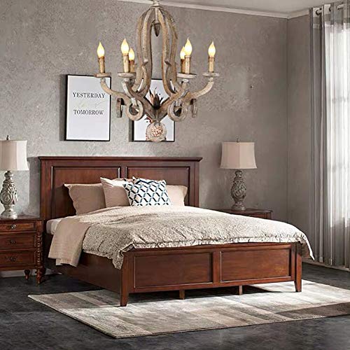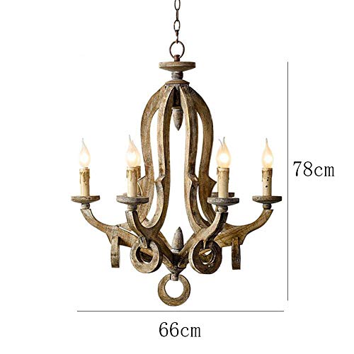 HYPPT Vintage Regolabile Lampadari A Candela,E14 Elegante Shabby Chic Legno Lampadari Lampada A Sospensione Per Soggiorno Camera Letto-
