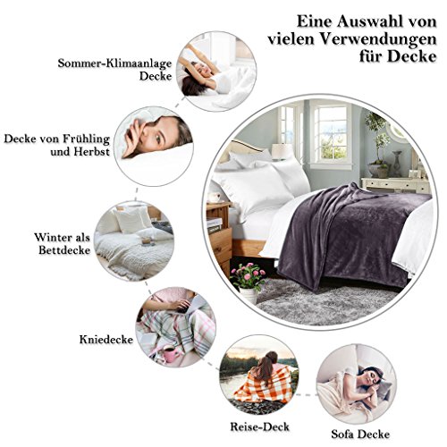 Hyseas, copriletto in peluche, grigio scuro, 180 x 220 cm