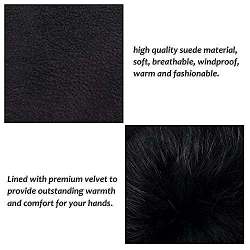 HYSENM camoscio guanti di pelle touchscreen guanti di pelle le donne con i tasti calda e morbida a temperature molto rigide, nero