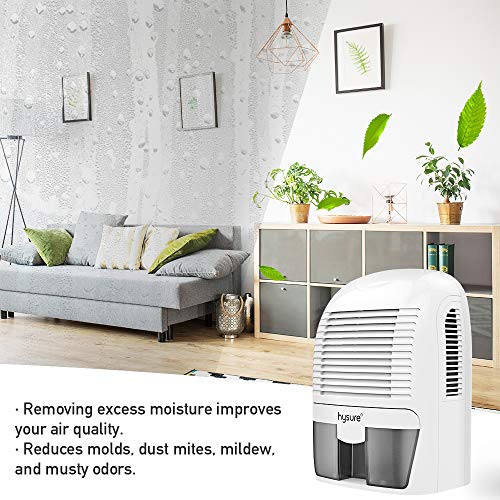 Hysure Deumidificatore Casa 1500ML Elettrico Silenzioso Portatile Basso Consumo Muffa con Indicatore LED Spegnimento Automatico per Bambini Adulti Camera da Letto Armadio Ufficio Bagno, 600ml/Giorno