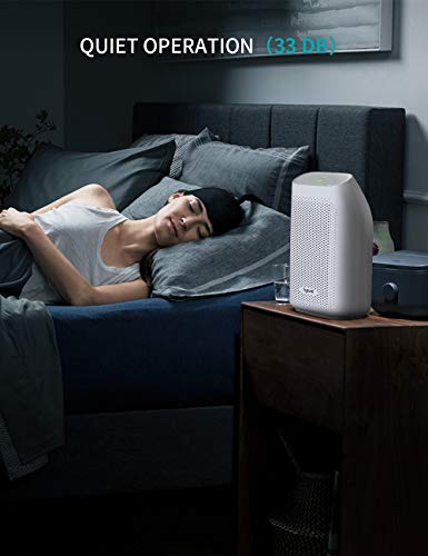 Portatile e Silenzioso: Volume grande del serbatoio 700 ml e dimensione portatile 16.3*10.7*26.7cm (6.4*4.2*10.5in). La tecnologia Peltier rende il deumidificatore molto leggero e silenzioso, il rumore è sempre sotto 33dB senza alcun suono fastidioso.