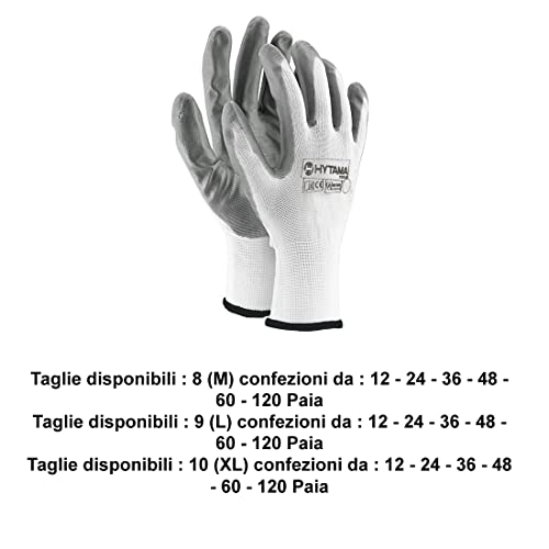 HYTAMA TOOLS GUANTI DA LAVORO IN NYLON CON PALMI SPALMATI IN NITRILE PER GIARDINAGGIO EDILIZIA AGRICOLTURA (60 PAIA - TAGLIA 10 )