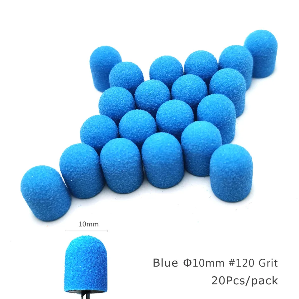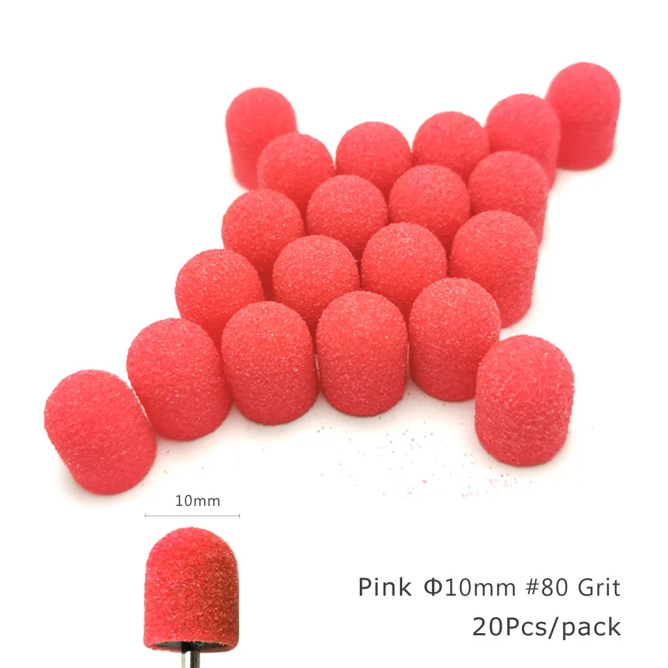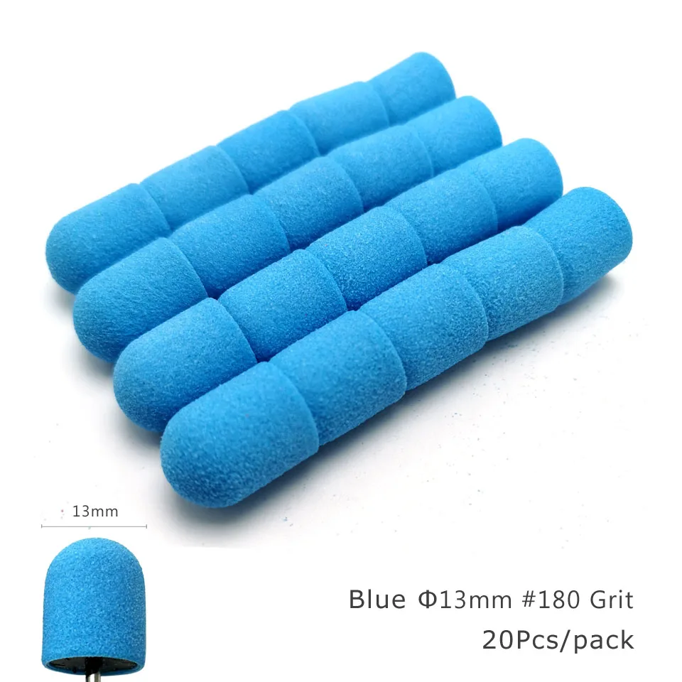 HYTOOS 20Pcs Plastic Base Sanding Caps Pedicure Polishing Sand Block Drill Accessories Foot Cuticle Tool With Rubber Grip