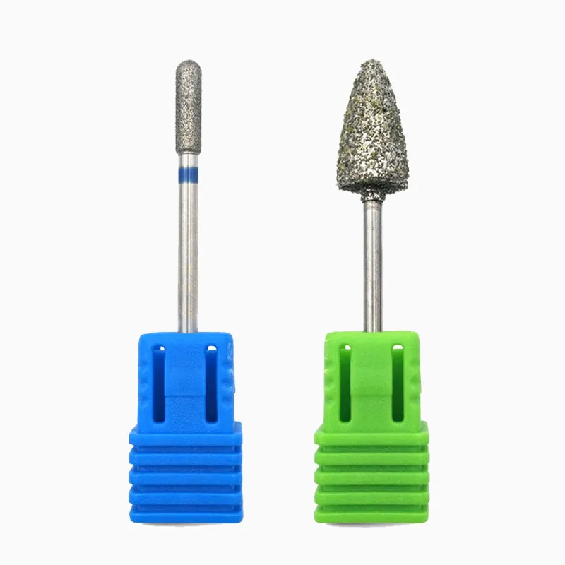 HYTOOS 2Pcs Diamond Nail Drill Bit Set 3/32" Rotary Burr Cuticle Clean Bits For Manicure Electric Drill Accessory Nail Art Tools