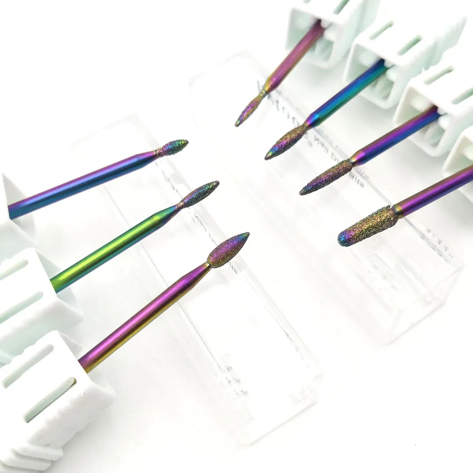 HYTOOS 1Pc Rainbow Diamond Nail Drill Bits 3/32" Manicure Bits Electric Drills Accessories Rotary Cuticle Drill Bit Milling Tool