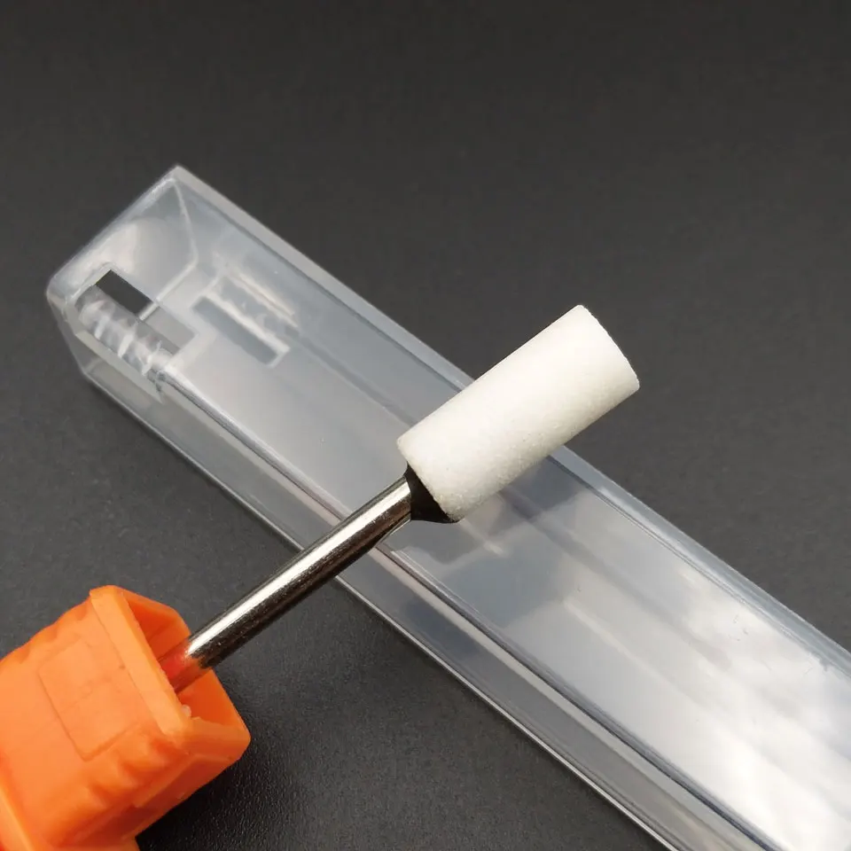 HYTOOS White Corundum Barrel Nail Drill Bit 3/32" Rotary Ceramic Stone Burr Manicure Electric Drill Accessory Nail Mills Tool