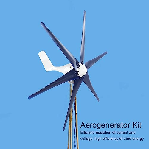 Hyuduo Kit turbine eoliche professionali, generatore eolico a 6 pale 800W, mulino a vento a bassa velocità del vento di 2,0 m/s per casa fai da te all'aperto(12V-Blu), dinamo