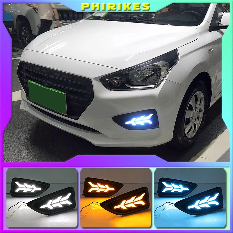 2Pcs For Hyundai Accent VERNA 2017 Fog Lamp Day Light with Turn Signal Function LED DRL Daytime Running Lights