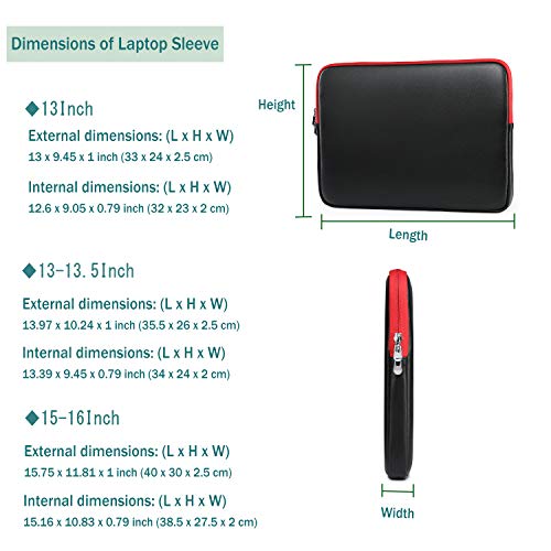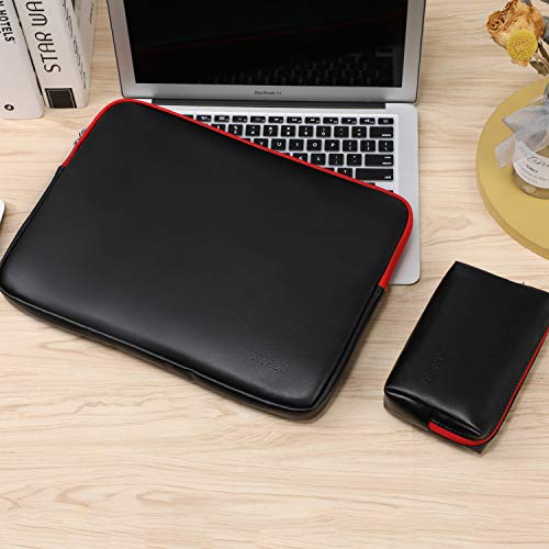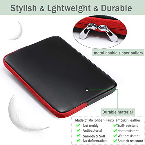 HYZUO,Custodia in pelle di agnello per laptop da 13 a 13.5", compatibile con MacBook Air 13, MacBook Pro 13, iPad Pro 12.9/13.5", Surface Book, Dell Inspiron 13, Asus Zenbook 13, colore: Nero/Rosso
