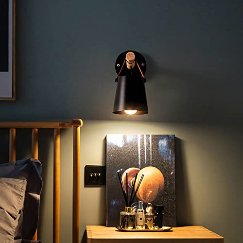 HZDJS Batteria A Batteria A Corda A Led Wall Sconce, Lampada Da Parete Con Telecomando A Cinghia Di Ferro Senza Perforazione Rotonda Lampada A Parete Per Sede in Legno Per Bagno,Nero