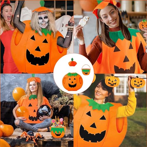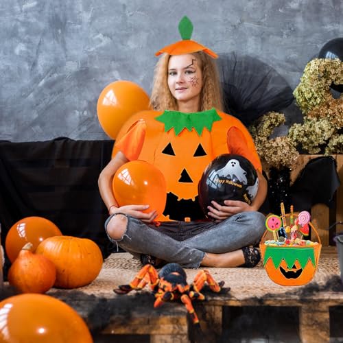 【Contenuto Confezione】Otterrai 1 abbigliamento di zucca halloween per Adulto, 1 cappello da zucca, 1 sacchetti da zucca, Simpatico sacchetto di zucca sono usati per la raccolta di caramelle, molto alla moda e chic.