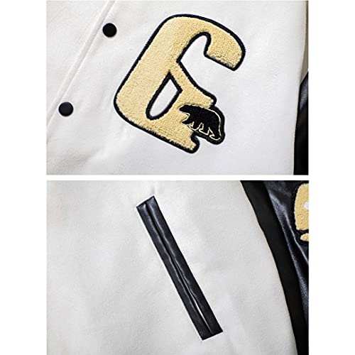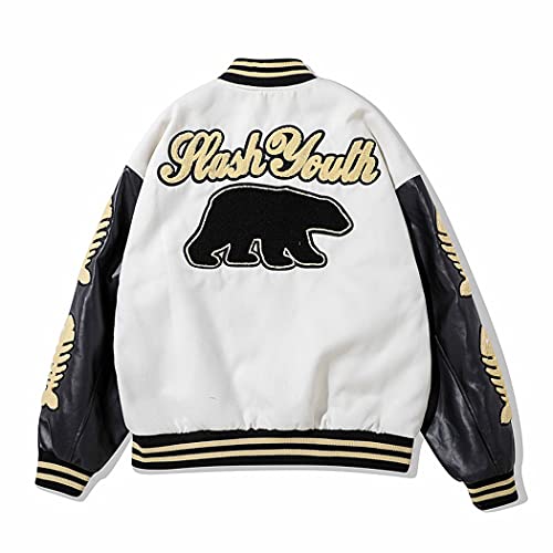 HZQIFEI Giacca Uomo da Baseball Varsity Giacca da Coppia Cuciture Vintage Unisex Jacket Felpa Motociclista Giubbotto Cappotto (Bianco, XL)