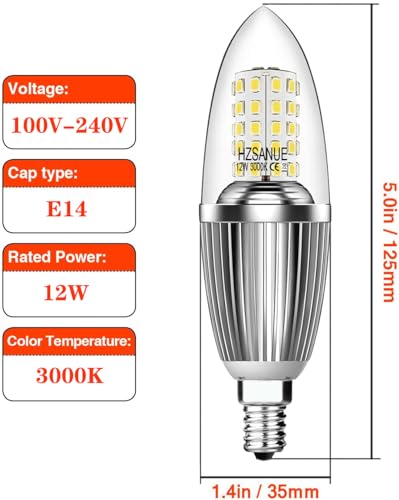 HZSANUE Lampadine LED E14 12W, Equivalente Lampadine Incandescenza 100W, 3000K Bianca Calda, 1350LM, Piccole Lampadine Vite Edison, 4 Pack