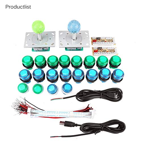 Hztyyier 2 Giocatori Giochi Arcade Classici Contest Kit Fai da Te Parti 2 Maniglie ellittiche Joystick ovali + 20 LED Illuminati Pulsanti Arcade Giochi Arcade Mame Raspberry Pi