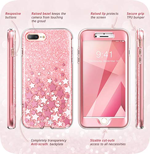 I-Blason Cover iPhone 8 Plus Cover iPhone 8 Plus, Custodia Brillantini e Protezione Schermo Integrata [Serie Cosmo] Glitter Case Compatibile con iPhone 7 Plus, iPhone 8 Plus, Rosa