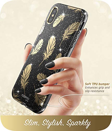 I-Blason Cover iPhone XS iPhone X, Custodia Protettiva [Cosmo] Bling Glitter Sparkle Clear Case [Antigraffi] con Protezione per Schermo per 5,8" iPhone XS 2018/ iPhone X 2017 (Nero)