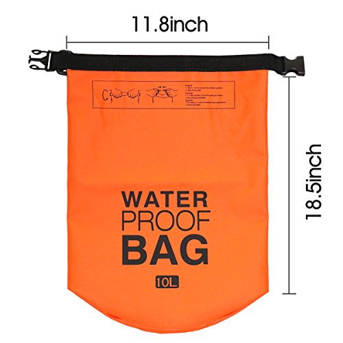 I-dragon 5L/10L/20l PVC esterna impermeabile Dry bag Sack borsa di stoccaggio per viaggiare rafting canottaggio kayak canoa campeggio snowboard, Orange, 10 litri