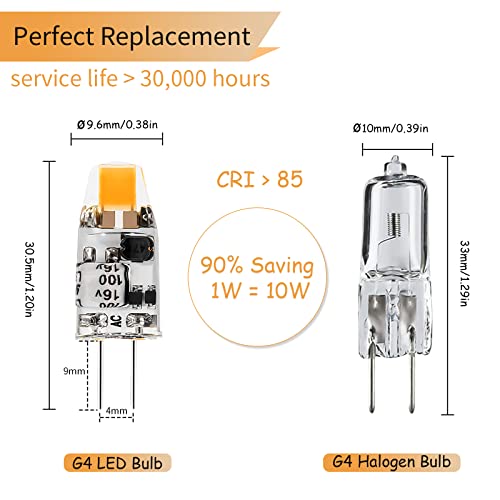 I-SHUNFA Confezione da 10 lampadine LED G4 1W bianco caldo 3000K AC 12V lampadine LED sostitutive lampadine alogene G4 15w non dimmerabili senza sfarfallio lampada base pin lampadina led