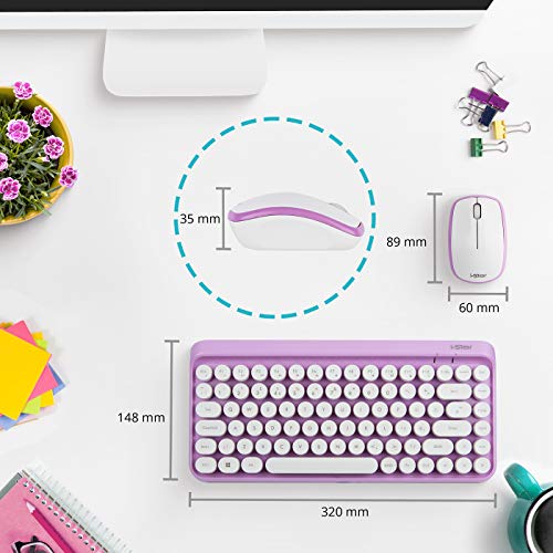 ✔️ Elegante e compatto: il mouse e la tastiera wireless iStar sono compatti ma di grande stile. Lo stile retrò con tasti circolari opachi è rifinito con un involucro lucido che si abbina al mouse compatto.