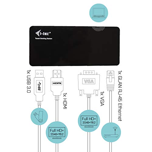 I-tec USB 3.0 Docking Station per Viaggio 1x HDMI 1x VGA 1x GLAN Ethernet 1x USB-A 3.0 per Windows MacOS Android Linux ChromeOS incl. USB 3.0 Cavo