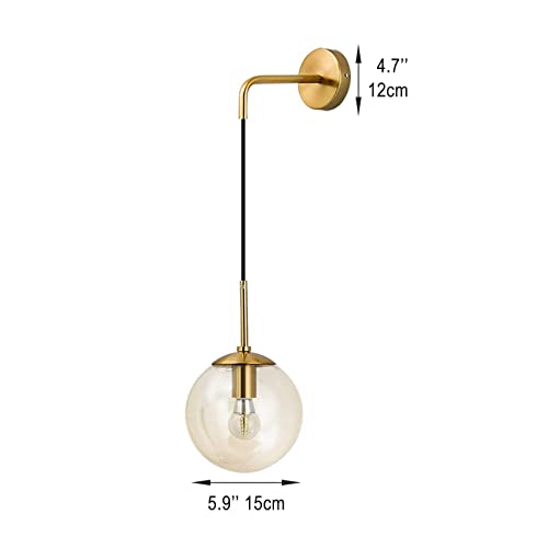 I-xun Lampada da parete Lampada da parete a sfera in vetro Applique E27 in ottone Lampada da parete con paralume Lampada da notte per soggiorno, camera da letto (Ambra, 15cm)