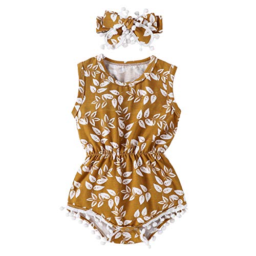 I3CKIZCE Completi Neonata Bimba 0-24 Mesi 2 PCS Pagliacetto + Fascia per Capelli Stampa Floreale senza Maniche Fascia Fiocco Moda Dolce Casual (Giallo, 6-12 M)