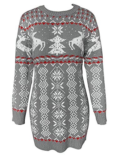 I3CKIZCE Mini Vestito Abito Aderente di Natale Donna a Maglia Calda a Stampa Neve Moda a Maniche Lunghe Feste Casual Chic Quotidiano (Grigio, XL)