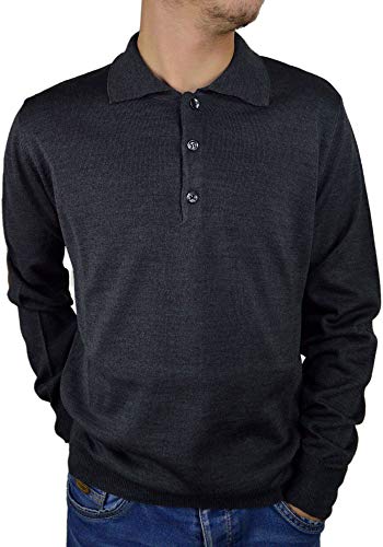 Iacobellis Maglione Uomo Pullover Polo Misto Lana Merinos Extrafine Made in Italy XXL Grigio Antracite