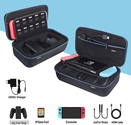 IAmer 6 in 1 Kit di Accessori per Nintendo Switch, Custodia per Nintendo Switch per Il Trasporto +Grip per Nintendo Switch Joy Con+ 3 Pellicole Protettive
